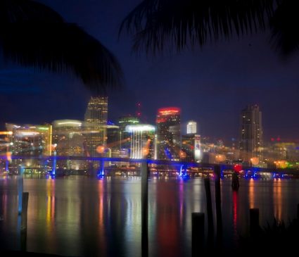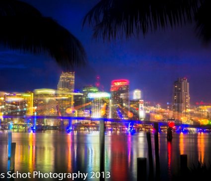 The Miami skyline is “electric,” and by using a photographic technique for my artistic expression I have visualized this city’s dynamic perspective. This view sees it as the continually expanding central hub of all the America’s.